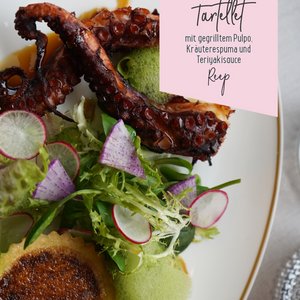 | mit gegrilltem Pulpo, Kräuterespuma und Teriyakisauce | 16.5 |